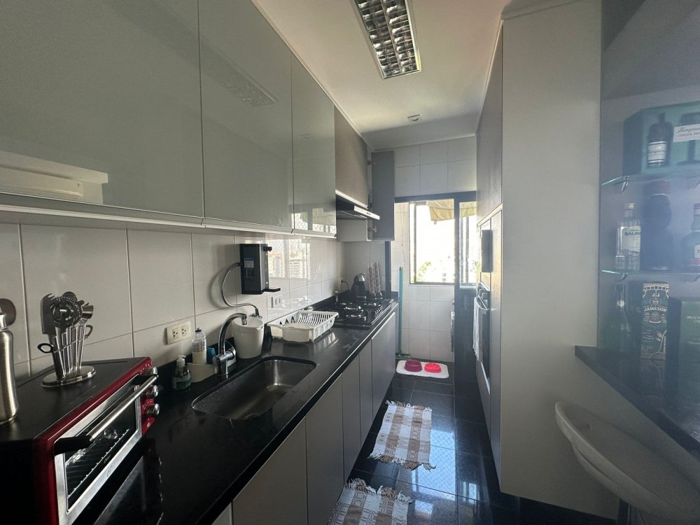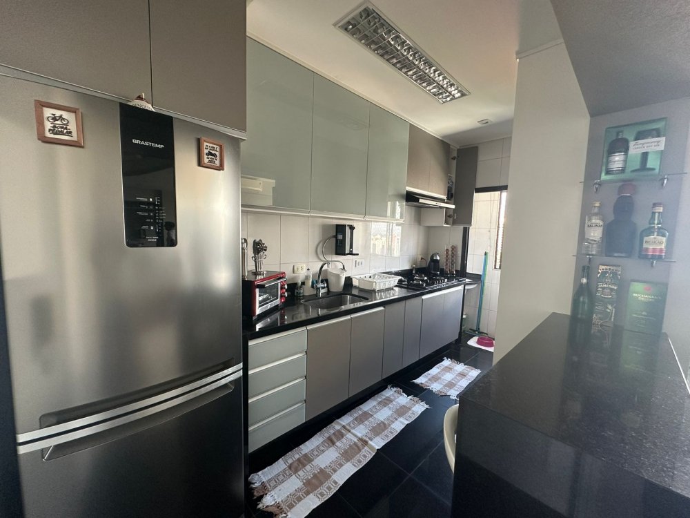 - Cozinha planejada com fogão e armários embutidos
