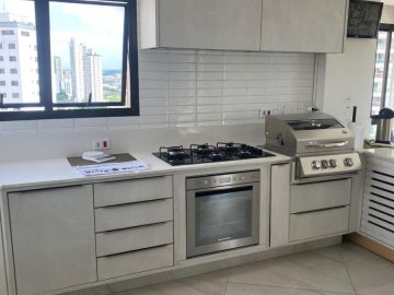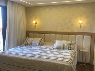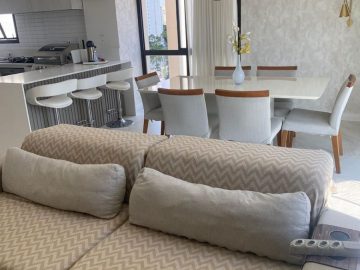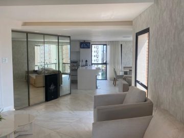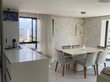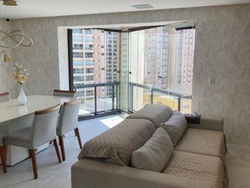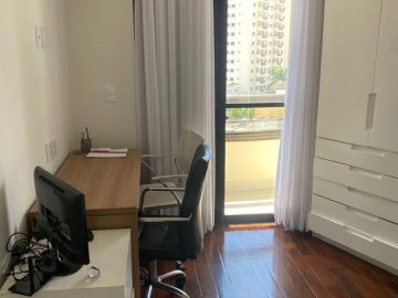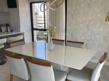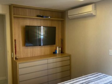 O apartamento dispõe de: 3 dormitórios, sendo 2 suítes, 4 banheiros, armários planejados nos quartos e cozinha, localizado no 7º andar, sendo 1 apartamento por andar, total de 10 andares, ar-condicionado nos quartos, box nos banheiros, gás encanado, varanda, 3 vagas livres.